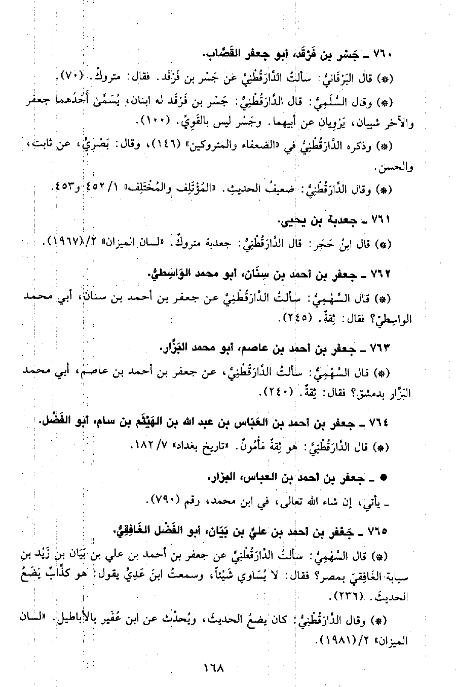 • قال السهمي: سألت الدَّارَقُطْنِيّ عن جعفر بن أحمد بن سنان، أبي محمد الواسطي؟ فقال: ثقة. (245) .