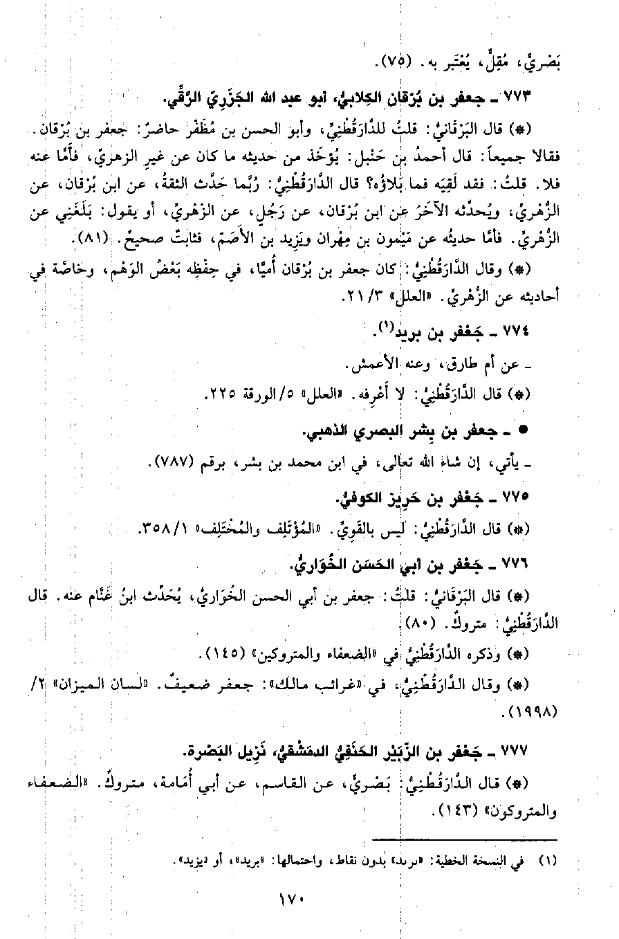 • وقال الدَّارَقُطْنِيّ: كان جعفر بن برقان أميًا، في حفظه بعض الوهم، وخاصة في أحاديثه عن الزهري. «العلل» 3 21.