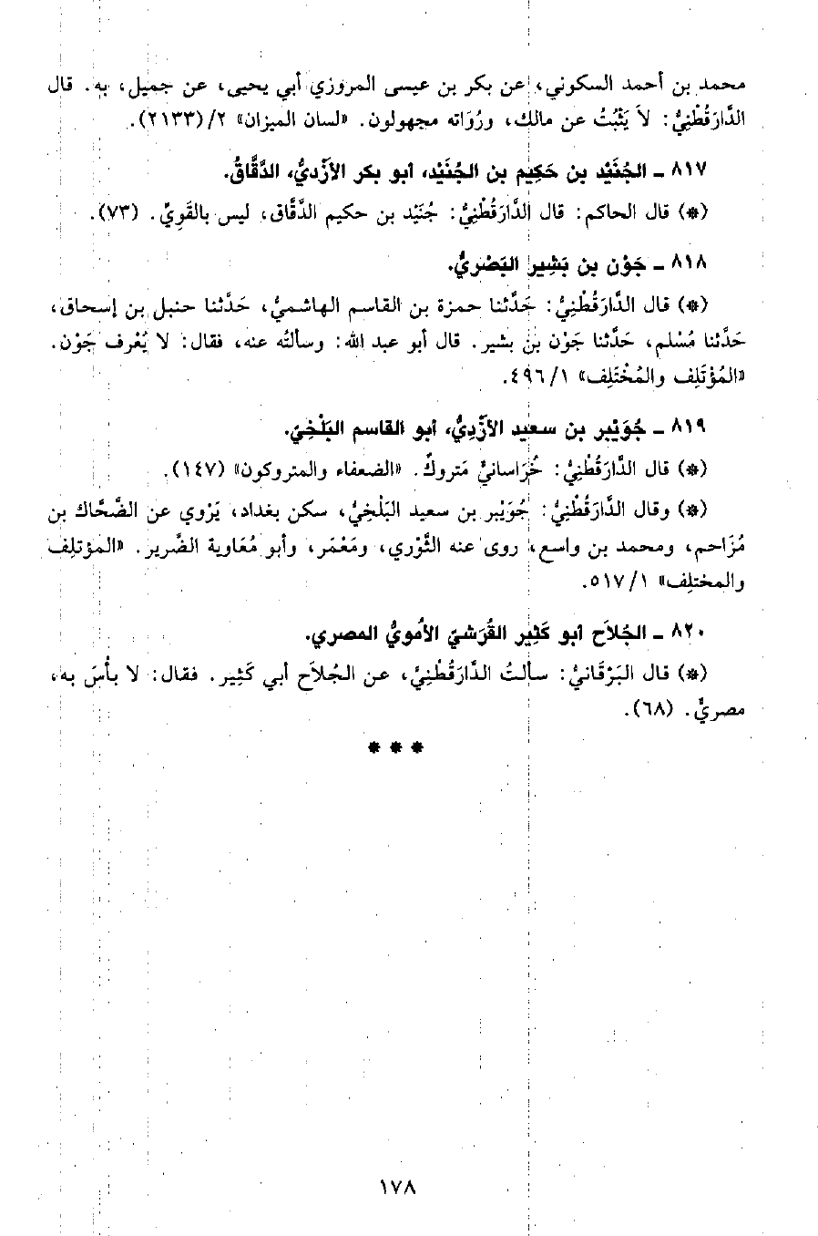 • وقال الدَّارَقُطْنِيّ: جويبر بن سعيد البلخي، سكن بغداد يروي عن الضحاك بن مزاحم، ومحمد بن واسع، روى عنه الثوري، ومعمر، وأبو معاوية الضرير. «المؤتلف والمختلف» 1 517.