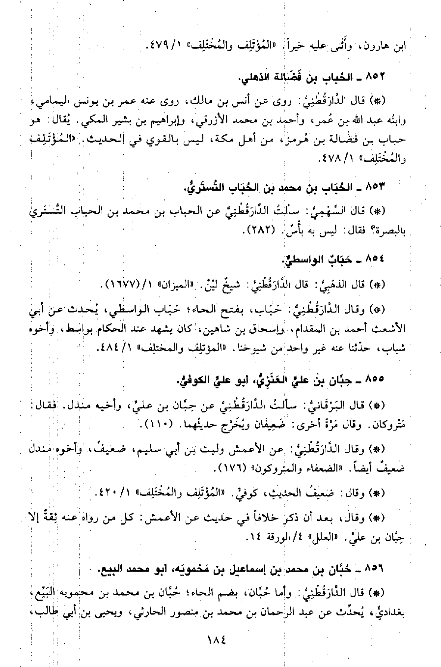 • وقال الدَّارَقُطْنِيّ: حباب بفتح الحاء؛ حباب الواسطي، يحدث عن أبي الأشعث أحمد بن المقدام، وإسحاق بن شاهين، كان يشهد عند الحكام بواسط، وأخوه شباب، حدثنا عنه غير واحد من شيوخنا. «المؤتلف والمختلف» 1 484.