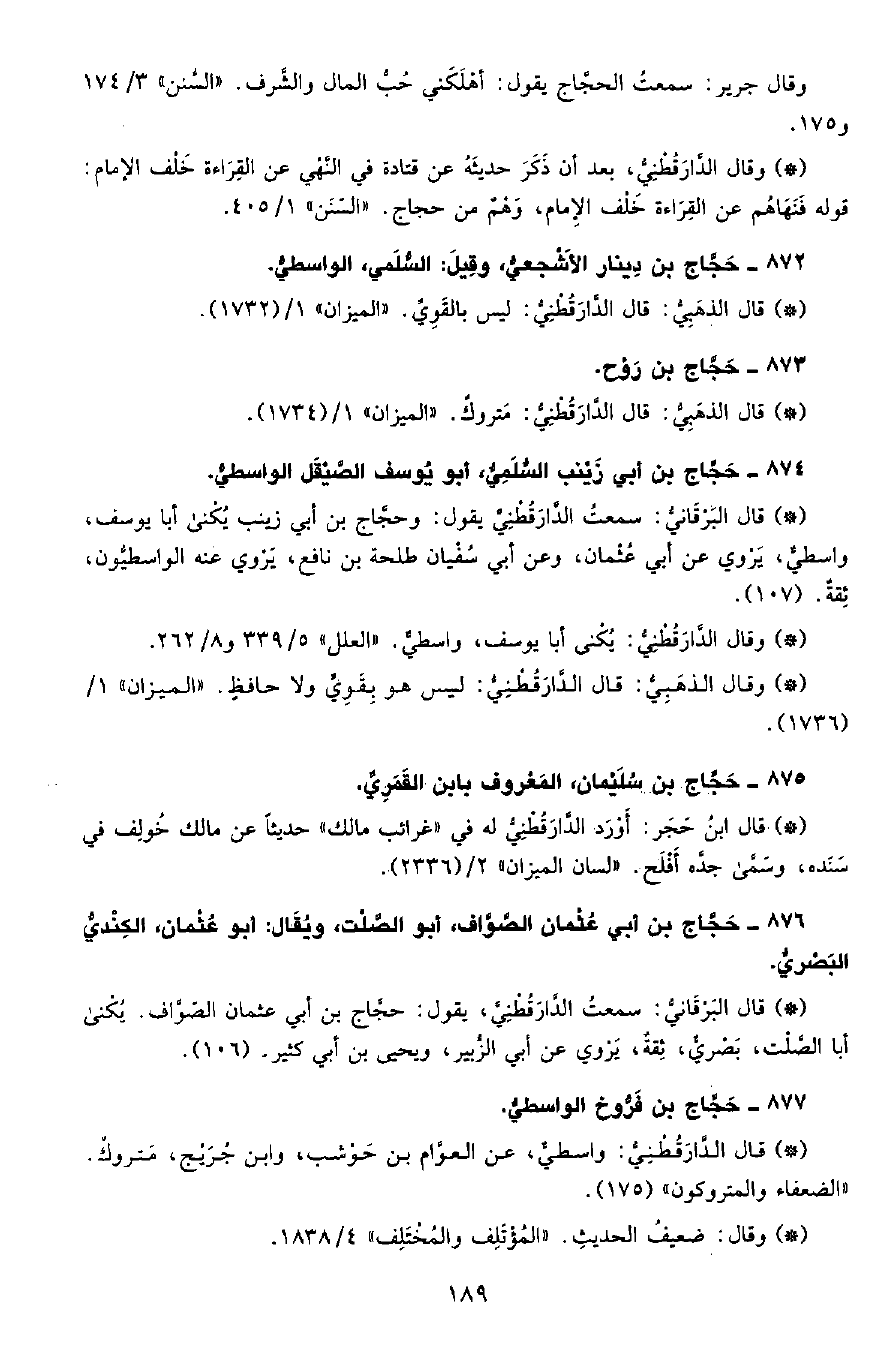 • قال البرقاني: سمعت الدَّارَقُطْنِيّ يقول حجاج بن أبي عثمان الصواف، يكنى أبا الصلت، بصري ثقة، يروي عن أبي الزبير، ويحيى بن أبي كثير. (106) .