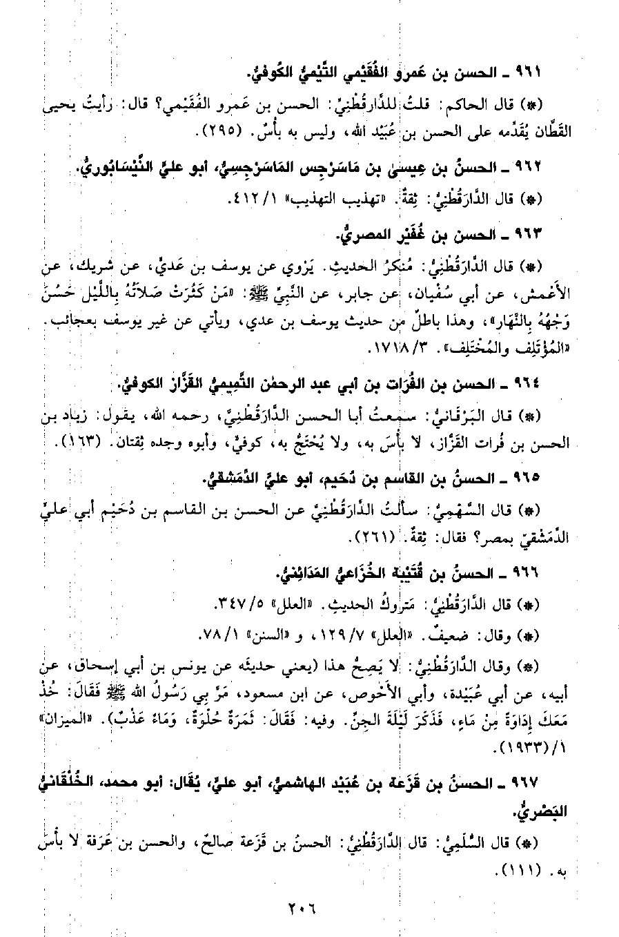 • قال السلمي: قال الدَّارَقُطْنِيّ: الحسن بن قزعة صالح، والحسن بن عرفة لا بأس به. (111) .