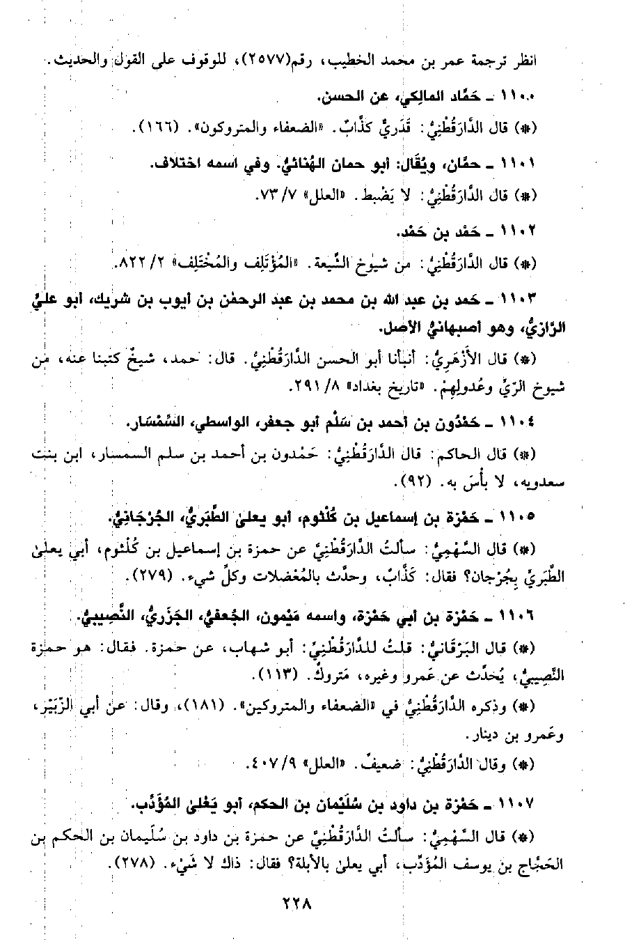 • قال السهمي: سألت الدَّارَقُطْنِيّ عن حمزة بن داود بن سليمان بن الحكم بن الحجاج بن يوسف المؤدب، أبي يعلى بالأبلة؟ فقال: ذاك لا شيء. (278) .