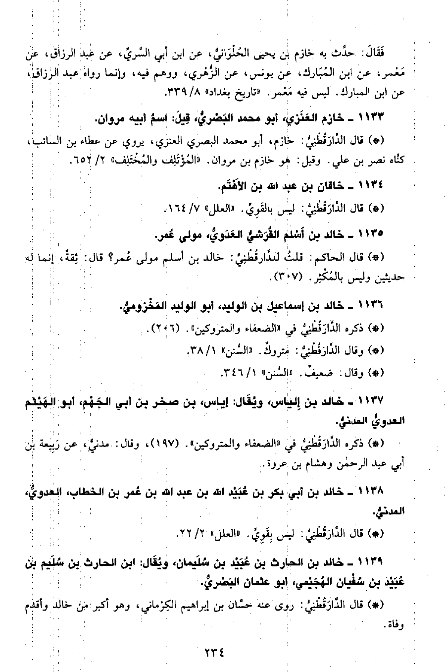 • قال الدَّارَقُطْنِيّ: روى عنه حسان بن إبراهيم الكرماني، وهو أكبر من خالد وأقدم وفاة.