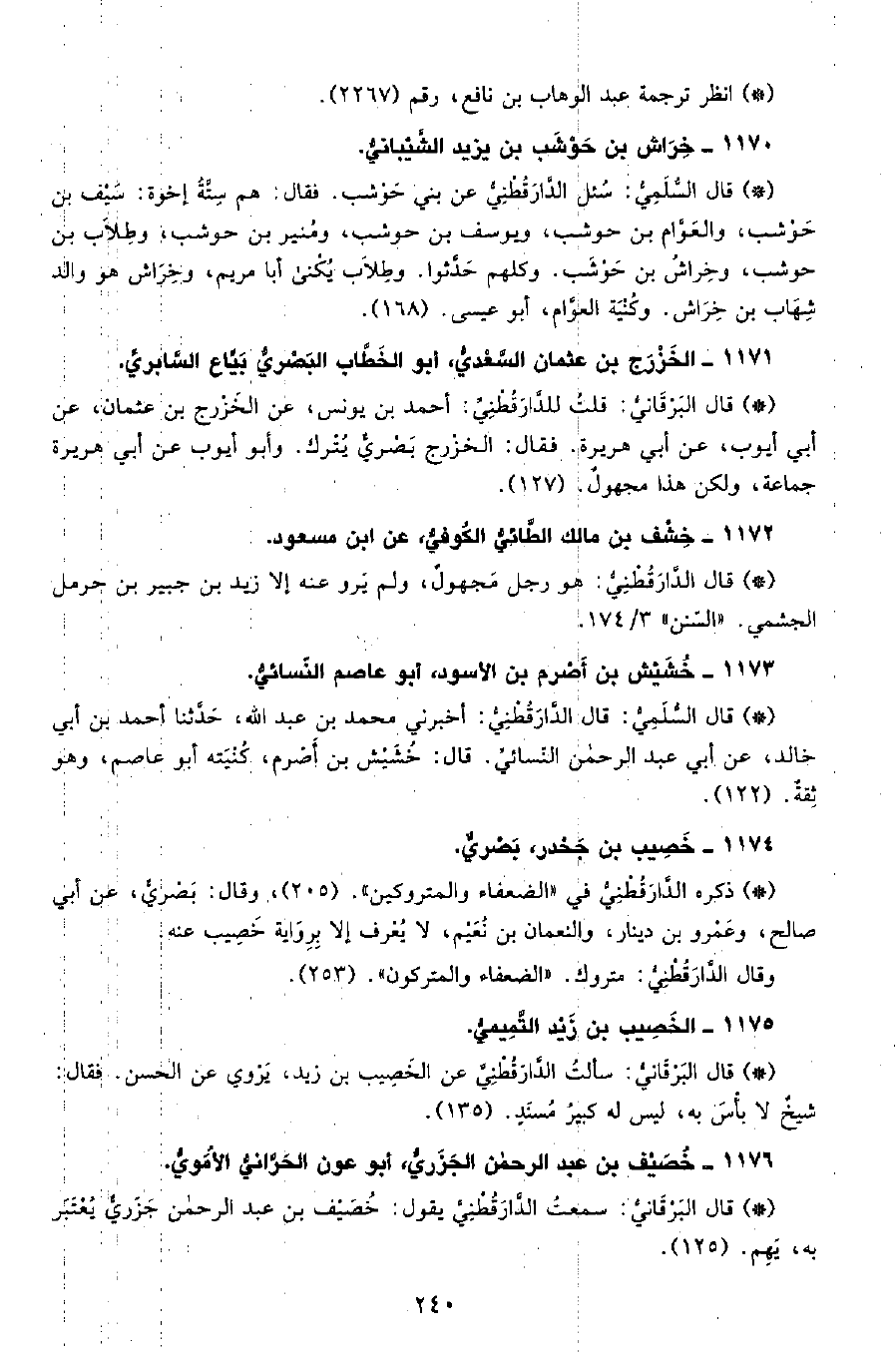 • قال البرقاني: سمعت الدَّارَقُطْنِيّ يقول خصيف بن عبد الرحمن جزري يعتبر به، يهم. (125) .