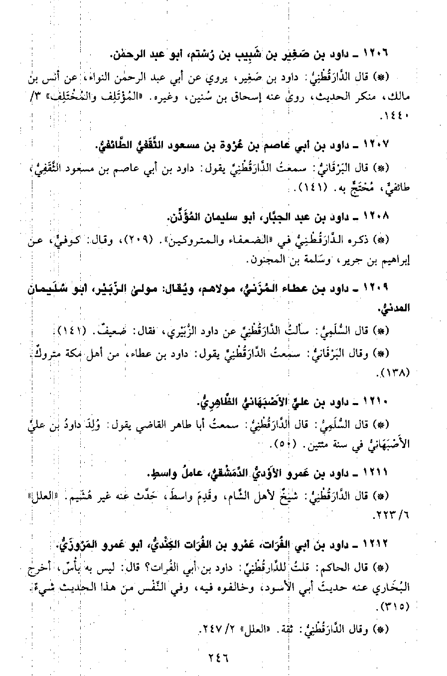 • قال البرقاني: سمعت الدَّارَقُطْنِيّ يقول داود بن أبي عاصم بن مسعود الثقفي، طائفي، محتج به. (141) .
