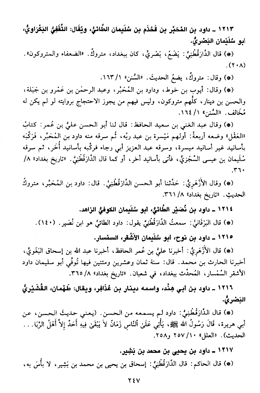 • قال البرقاني: سمعت الدَّارَقُطْنِيّ يقول داود الطائي، هو ابن نصير. (140) .