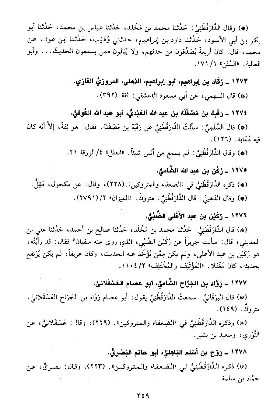 • قال البرقاني: سمعت الدَّارَقُطْنِيّ يقول أبو عصام رواد بن الجراح العسقلاني، متروك. (149) .