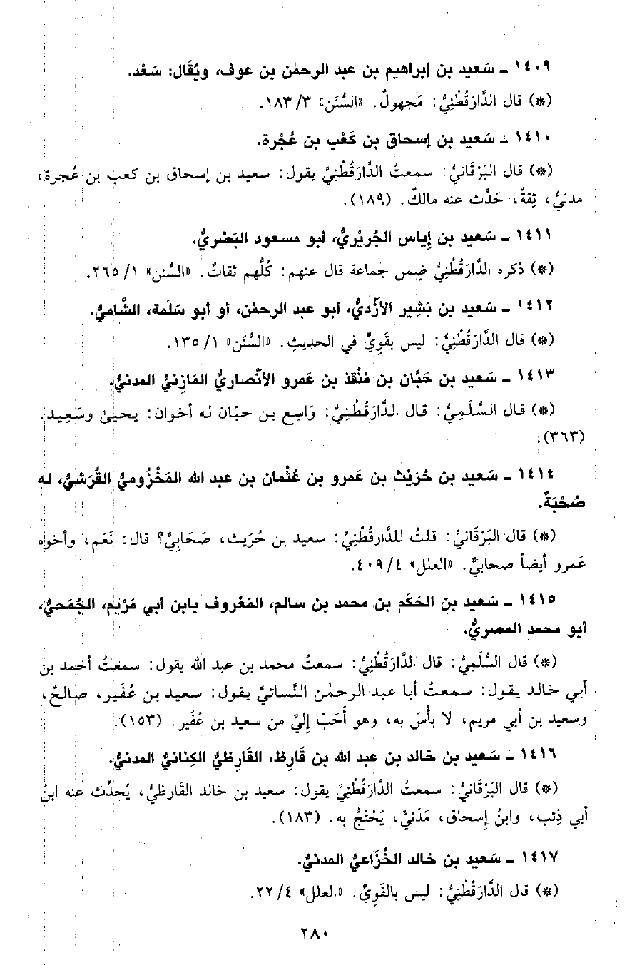 • قال البرقاني: سمعت الدَّارَقُطْنِيّ يقول سعيد بن خالد القارظي، يحدث عنه ابن أبي ذئب، وابن إسحاق، مدني يحتج به. (183) .
