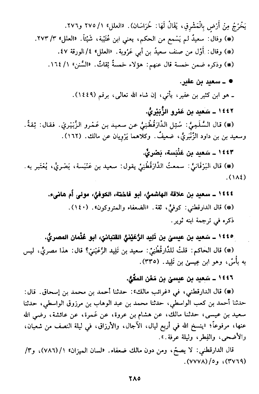 • قال البرقاني: سمعت الدَّارَقُطْنِيّ يقول سعيد بن عنبسة، بصري، يعتبر به. (184) .