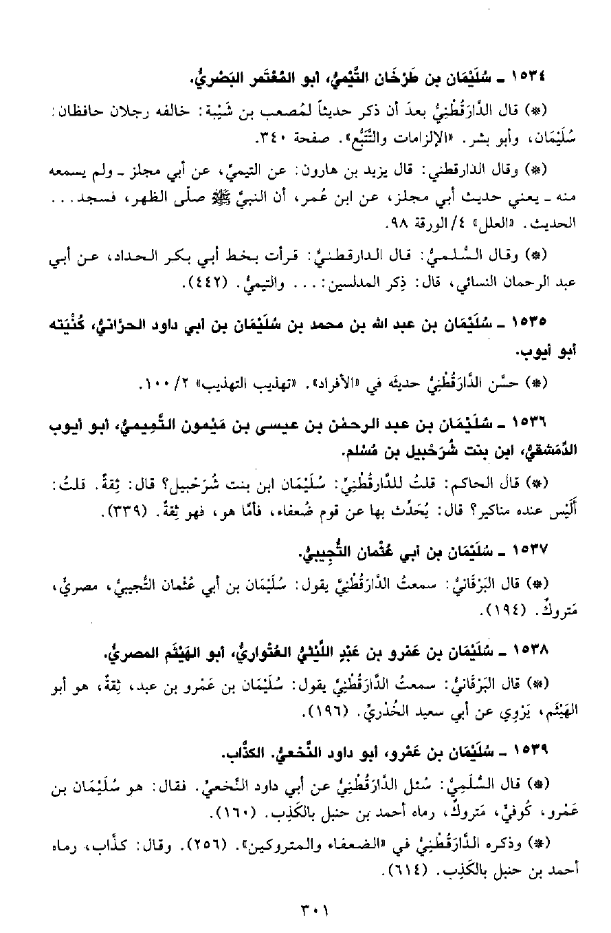 • قال البرقاني: سمعت الدَّارَقُطْنِيّ يقول سليمان بن أبي عثمان التجيبي مصري، متروك. (194) .
