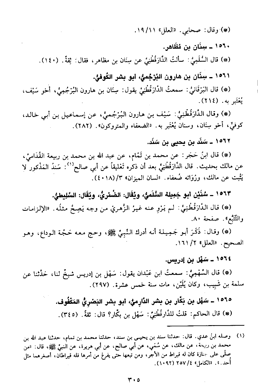 • قال السلمي: سألت الدَّارَقُطْنِيّ عن سنان بن مظاهر، فقال: ثقة. (140) .