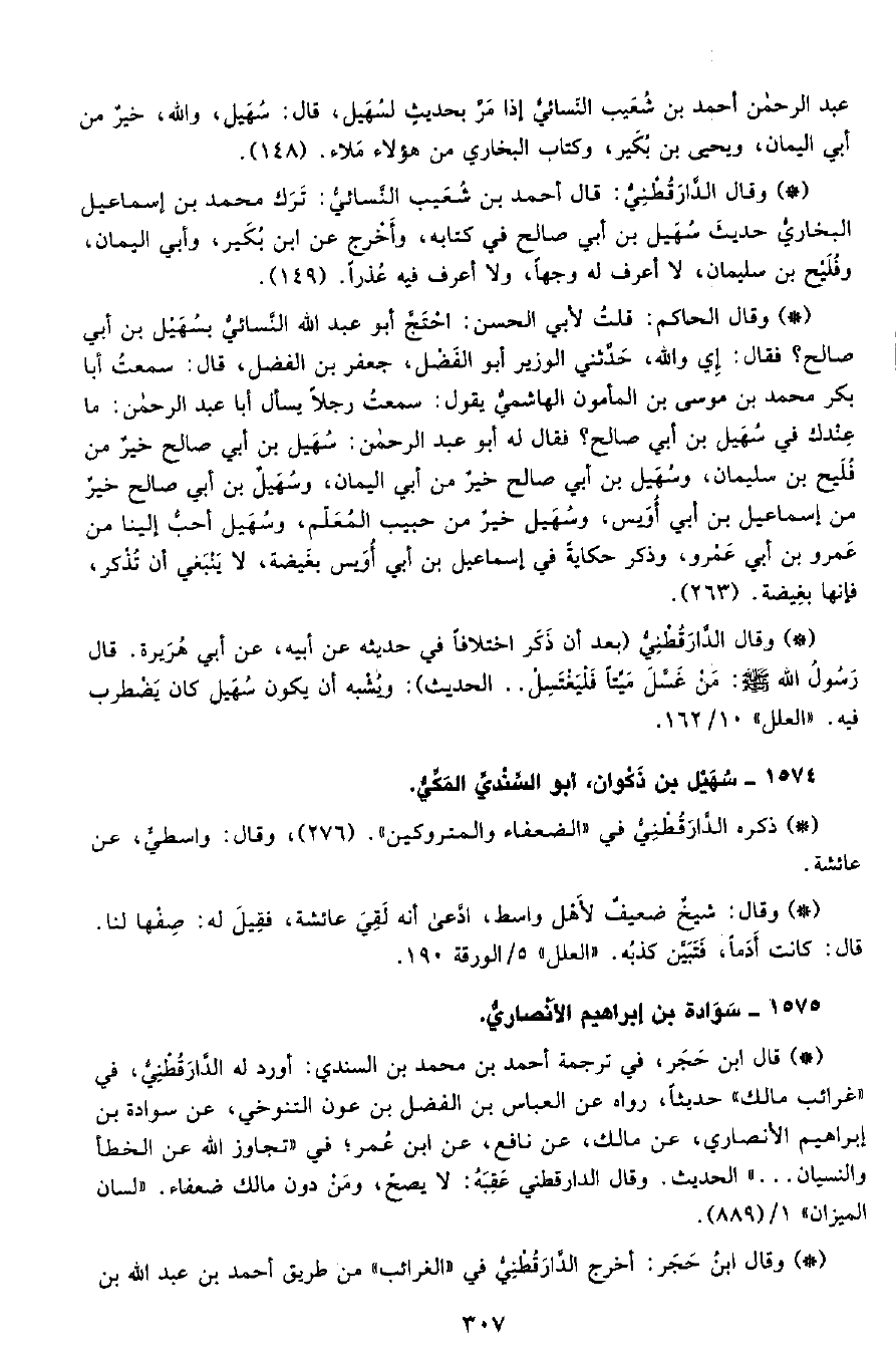 • وقال الدَّارَقُطْنِيّ: (بعد أن ذكر اختلافًا في حديثه، عن أبيه، عن أبي هريرة، قال رسول الله - صلى الله عليه وسلم - من غسل ميتًا فليغتسل ... الحديث) ويشبه أن يكون سهيل كان يضطرب فيه. «العلل» 10 162.