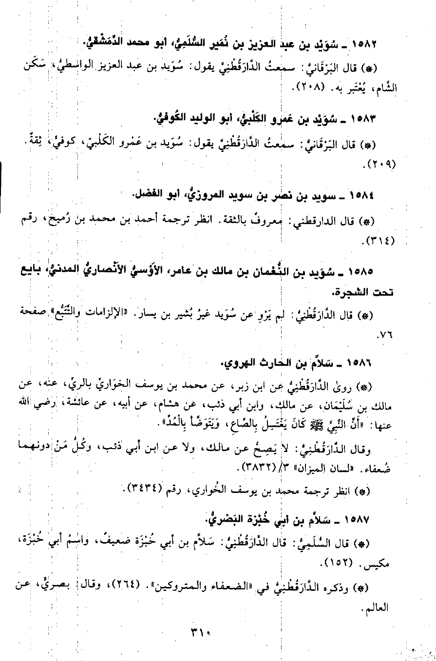 • قال البرقاني: سمعت الدَّارَقُطْنِيّ يقول سوي بن عمرو الكلبي، كوفي، ثقة. (209) .