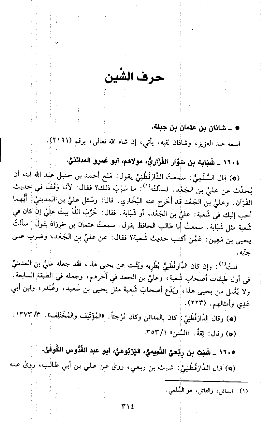 • قال الدَّارَقُطْنِيّ: شبث بن ربعي، روى عن علي بن أبي طالب، روى عنه