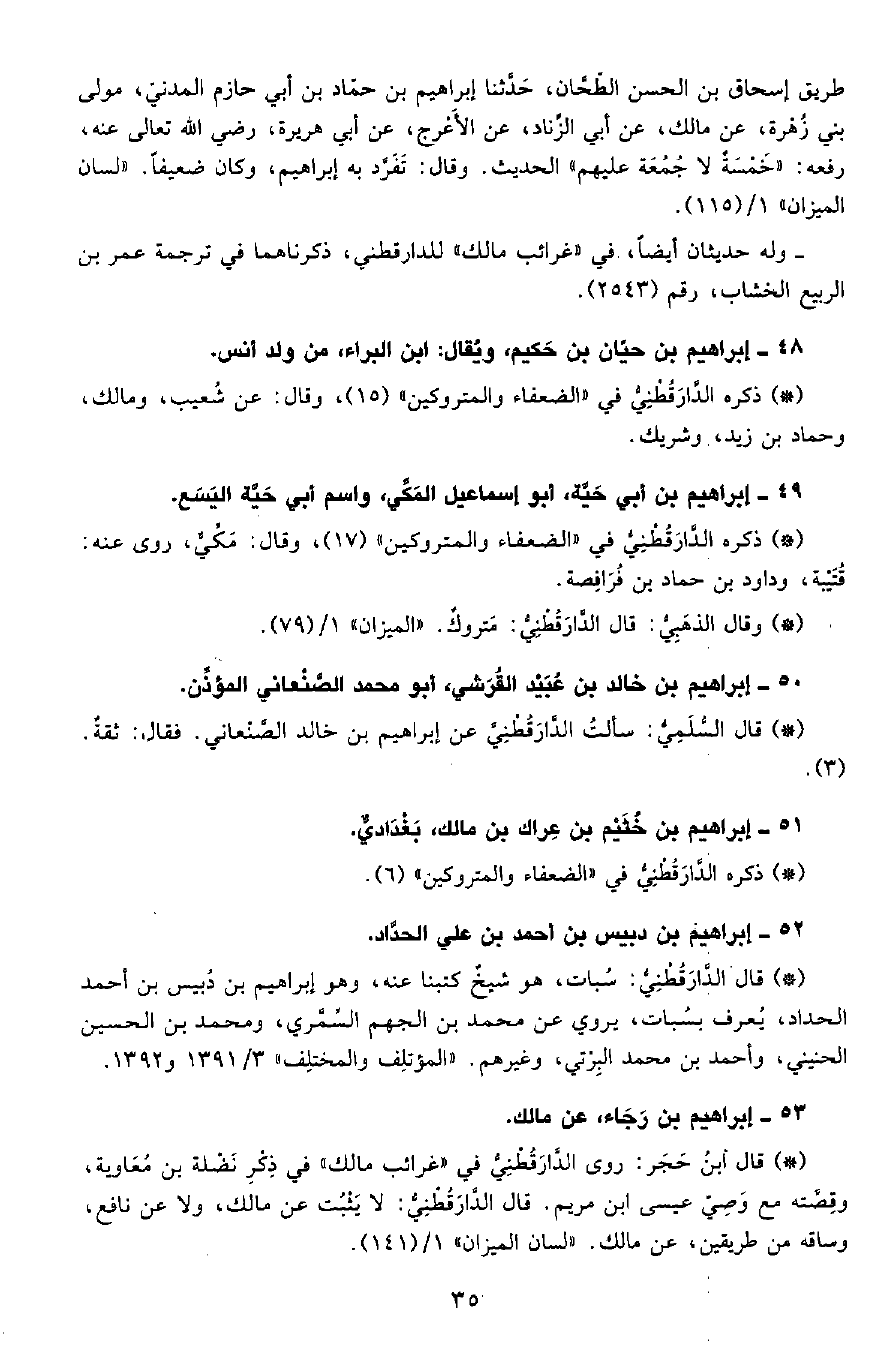 • ذكره الدَّارَقُطْنِيّ في «الضعفاء والمتروكين» (15) وقال عن شعيب، ومالك، وحماد بن زيد، وشريك.
