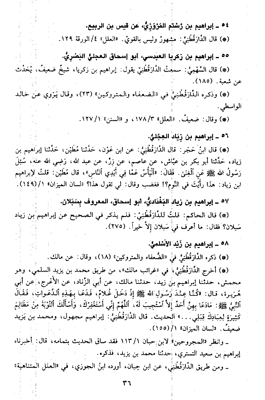 • قال السهمي: سمعت الدَّارَقُطْنِيّ يقول إبراهيم بن زكريا، شيخ ضعيف، يحدث عن شعبة. (185) .