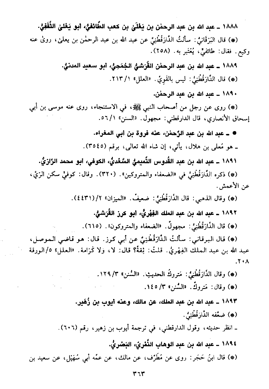 • قال البَرْقانِيّ: سألت الدَّارَقُطْنِيّ عن عبد الله بن عبد الرحمن بن يعلى، روى عنه وكيع، فقال: طائفي، يعتبر به. (258) .
