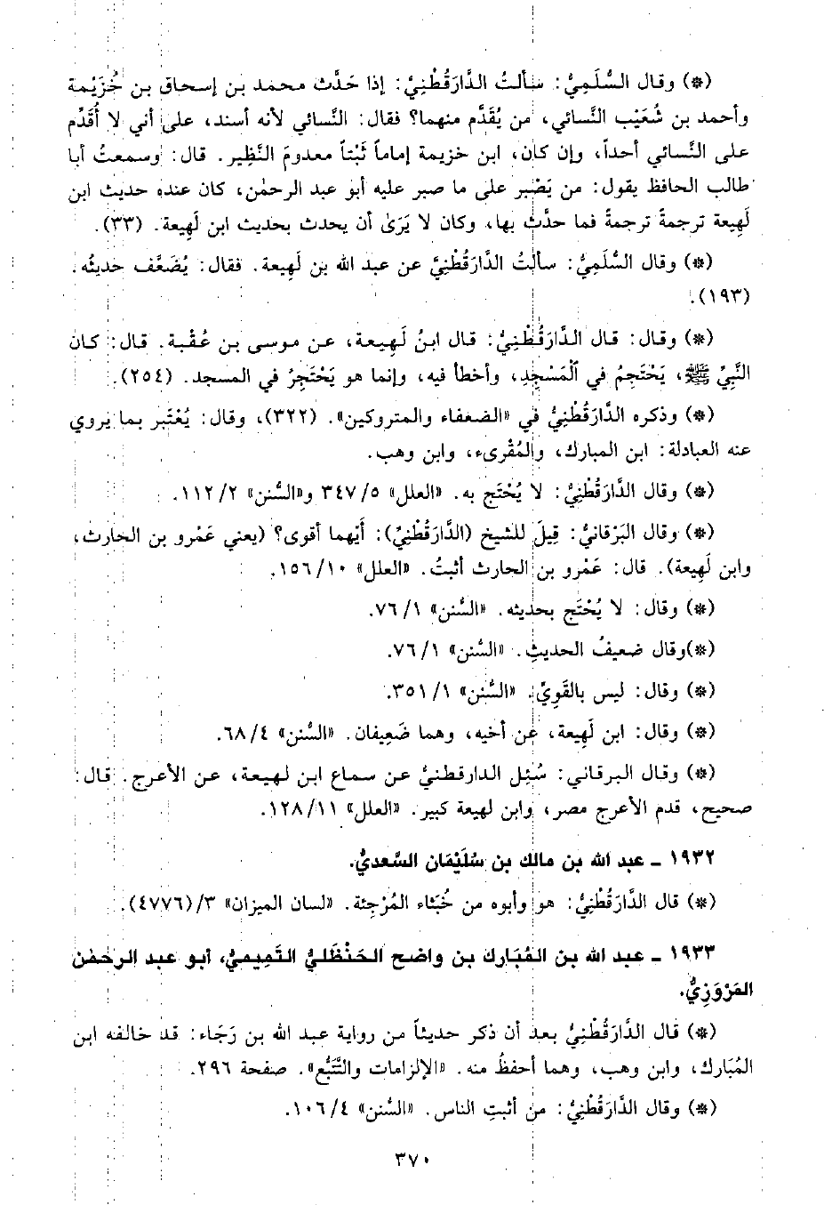 • وقال السُّلَمِيُّ: سألت الدَّارَقُطْنِيّ عن عبد اللهِ بن لهيعة، فقال: يضعف حديثه. (193) .