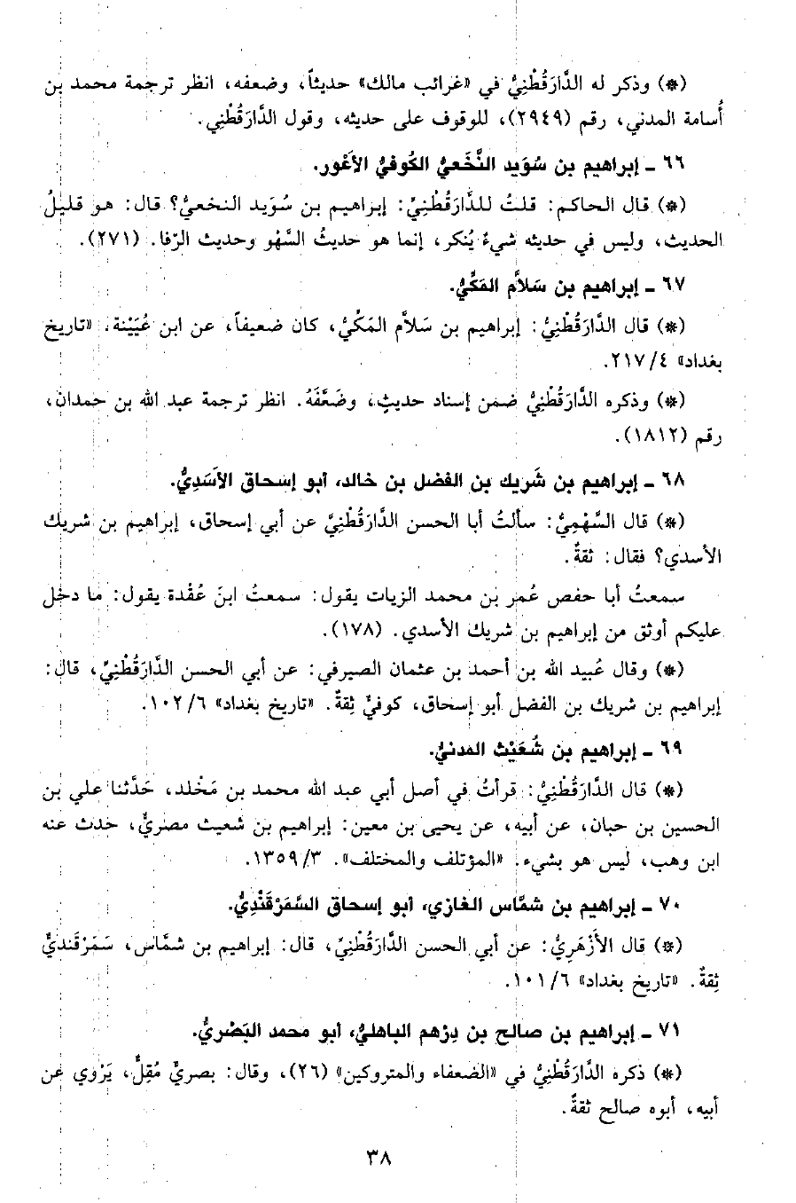 • قال الدَّارَقُطْنِيّ: إبراهيم بن سلام المكي، كان ضعيفًا، عن ابن عيينة. «تاريخ بغداد» 4 217.