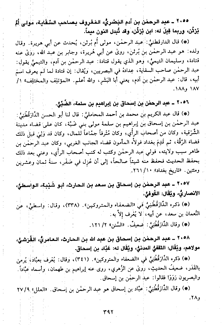 2055 - عبد الرحمن بن آدم، البَصْرِيّ، المعروف بصاحب السقاية، مولى أم برثن، وربما قيل له ابن برثن، وقد تبدل النون ميمًا.