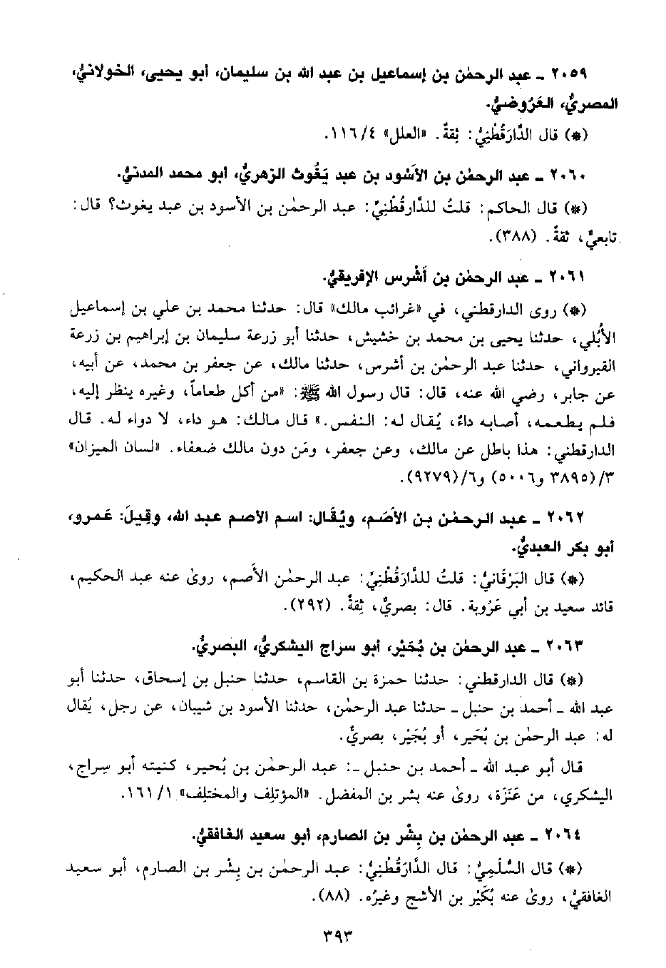 • قال البَرْقانِيّ: قلتُ للدَّارَقُطْنِيِّ عبد الرحمن الأصم، روي عنه عبد الحكيم، قائد سعيد بن أبي عروبة، قال بصري، ثقة. (292) .