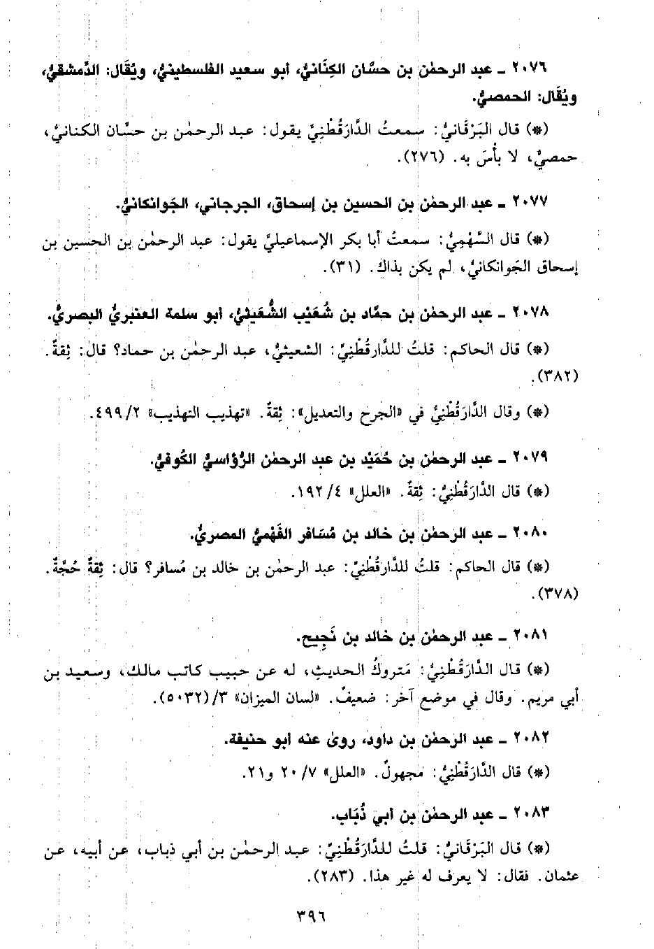 • قال الحاكم: قلتُ للدَّارَقُطْنِيِّ الشعيثي عبد الرحمن بن حماد؟ قال ثقة. (382) .