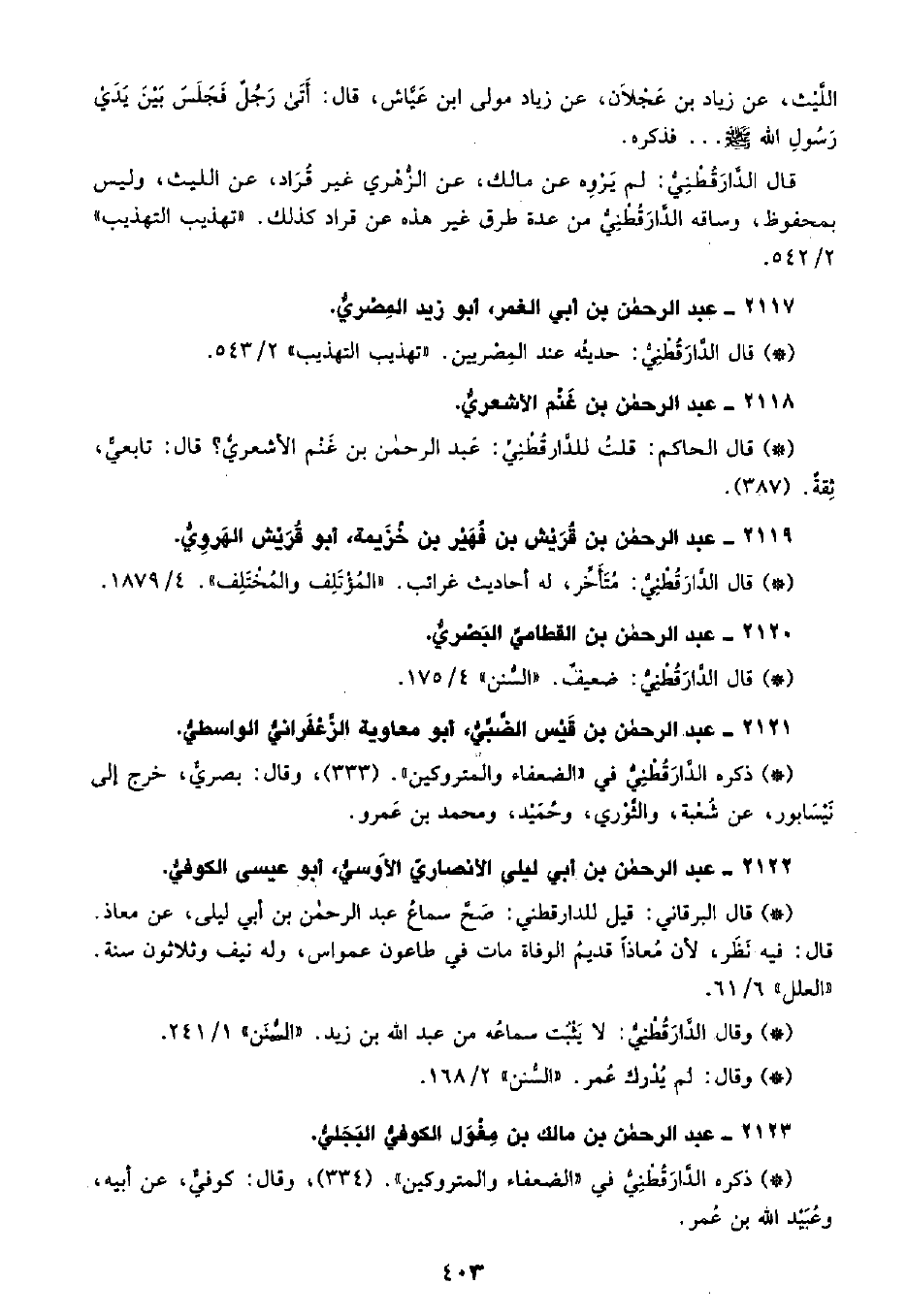 • قال الحاكم: قلتُ للدَّارَقُطْنِيِّ عبد الرحمن بن غنم الأشعري؟ قال تابعي، ثقة. (387) .