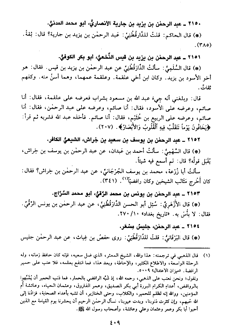 • قال الأزهري: سئل أبو الحسن الدَّارَقُطْنِيّ، عن عبد الرحمن بن يونس الرقي، فقال: لا بأس به. «تاريخ بغداد» 10 270.