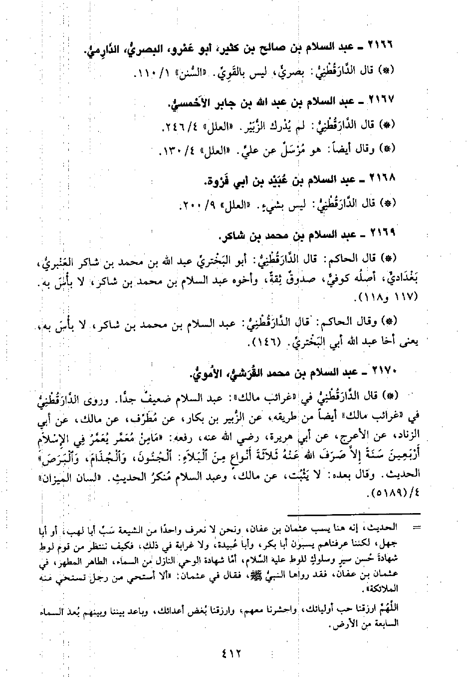 • وقال الحاكم: قال الدَّارَقُطْنِيّ: عبد السلام بن محمد بن شاكر، لا بأس به، يعني أخا عبد الله أبي البختري. (146) .