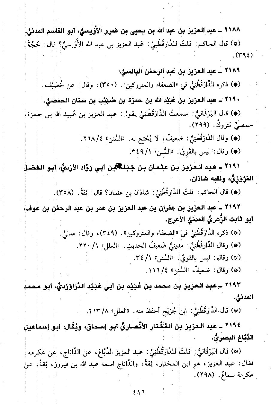 • قال الحاكم: قلتُ للدَّارَقُطْنِيِّ عبد العزيز بن عبد الله الأويسي؟ قال حجة. (394) .
