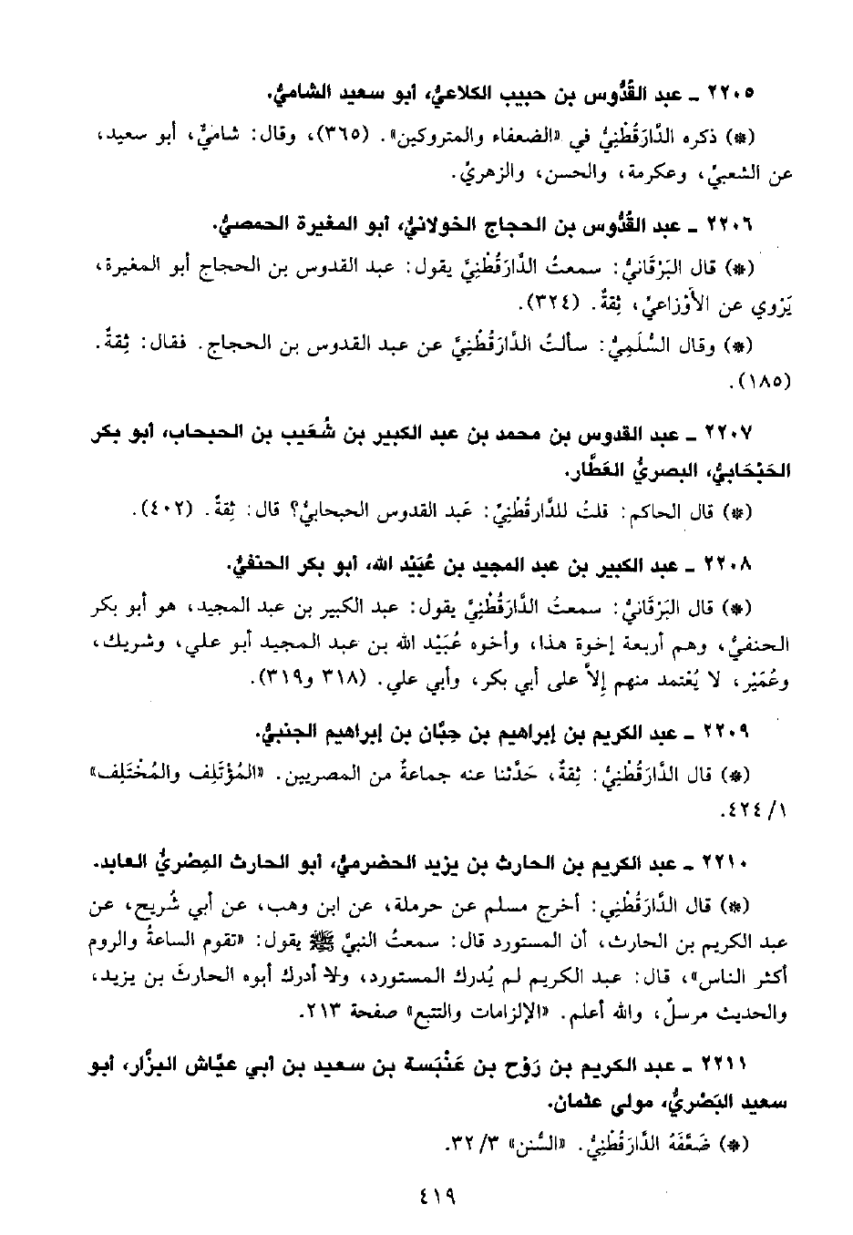 • قال الحاكم: قلتُ للدَّارَقُطْنِيِّ عبد القدوس الحبحابي؟ قال ثقة. (402) .