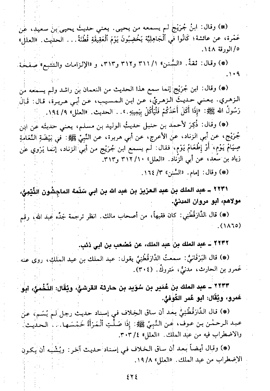 • قال البَرْقانِيّ: سَمِعْتُ الدَّارَقُطْنِيّ يقول عبد الملك بن عبد الملك، روى عنه عمرو بن الحارث، مدني، متروك. (304) .