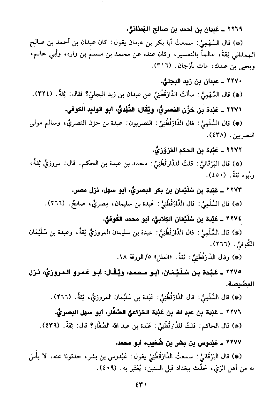 • قال السهمي: سألت الدَّارَقُطْنِيّ عن عبدان بن زيد البجلي؟ فقال: ثقة. (314) .