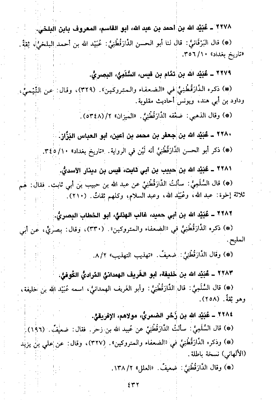 • قال البَرْقانِيّ: قال لنا أبو الحسن الدَّارَقُطْنِيّ عبيد الله بن أحمد البلخي، ثقة. «تاريخ بغداد» 10 356.