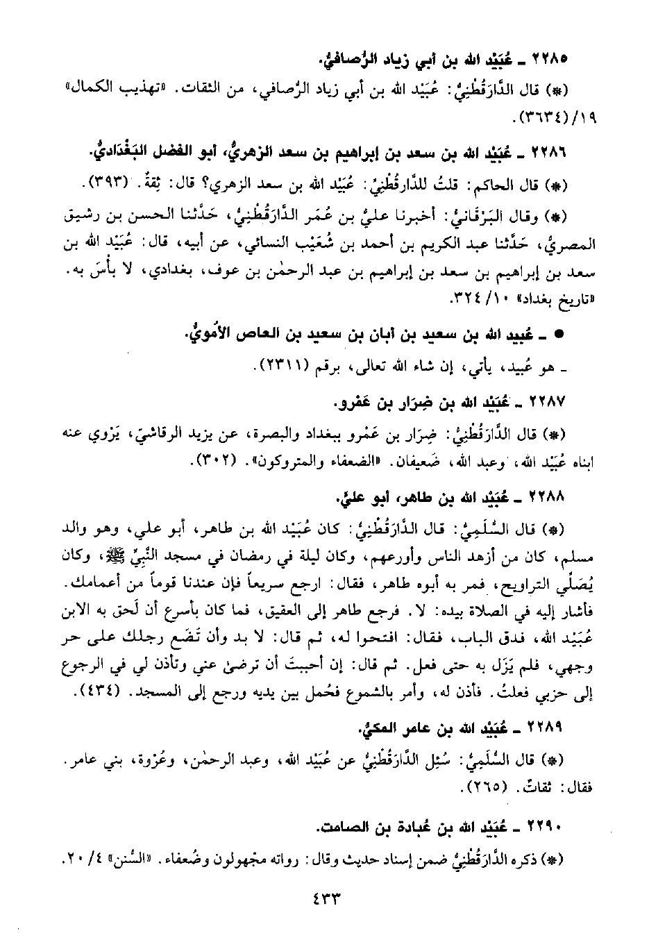 • قال السُّلَمِيُّ: سئل الدَّارَقُطْنِيّ عن عبيد الله، وعبد الرحمن، وعروة، بني عامر، فقال: ثقات. (265) .