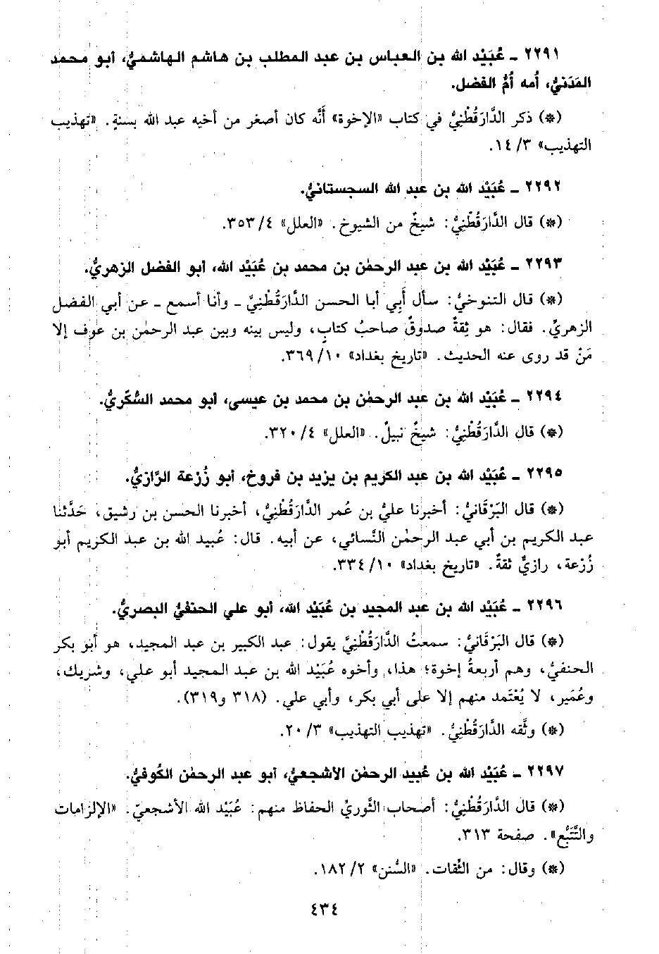 • قال البَرْقانِيّ: سَمِعْتُ الدَّارَقُطْنِيّ يقول عبد الكبير بن عبد المجيد، هو أبو بكر الحنفي، وهم أربعة إِخوة. هذا، وأخوه عبيد الله بن عبد المجيد أبو علي، وشريك، وعمير، لا يعتمد منهم إلا على أبي بكر، وأبي علي. (318 و319) .