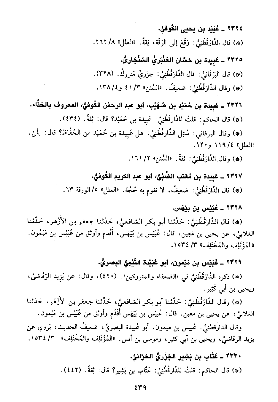 • قال الحاكم: قلتُ للدَّارَقُطْنِيِّ عبيدة بن حميد؟ قال ثقة. (434) .