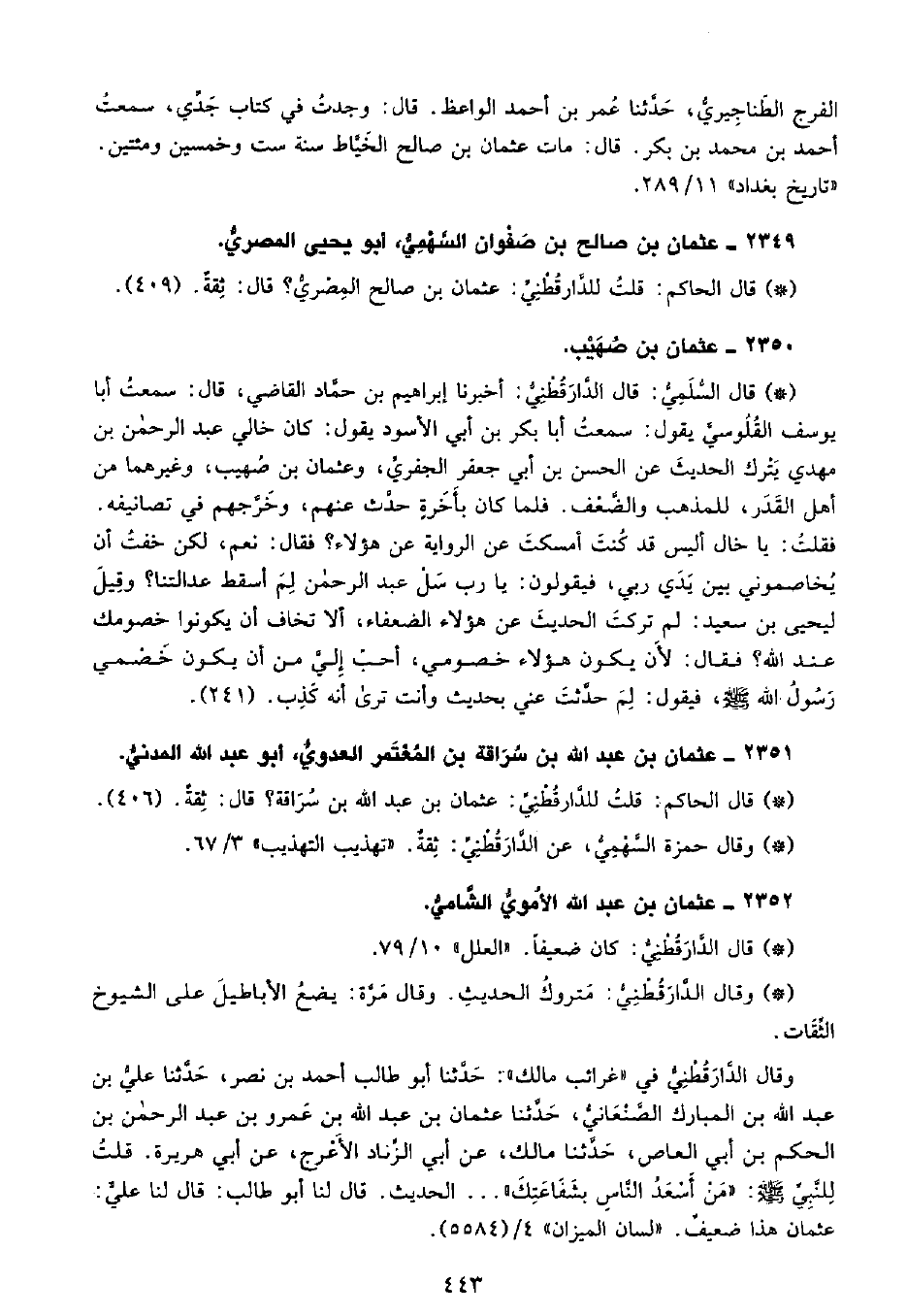 • قال الحاكم: قلتُ للدَّارَقُطْنِيِّ عثمان بن صالح المصري؟ قال ثقة. (409) .