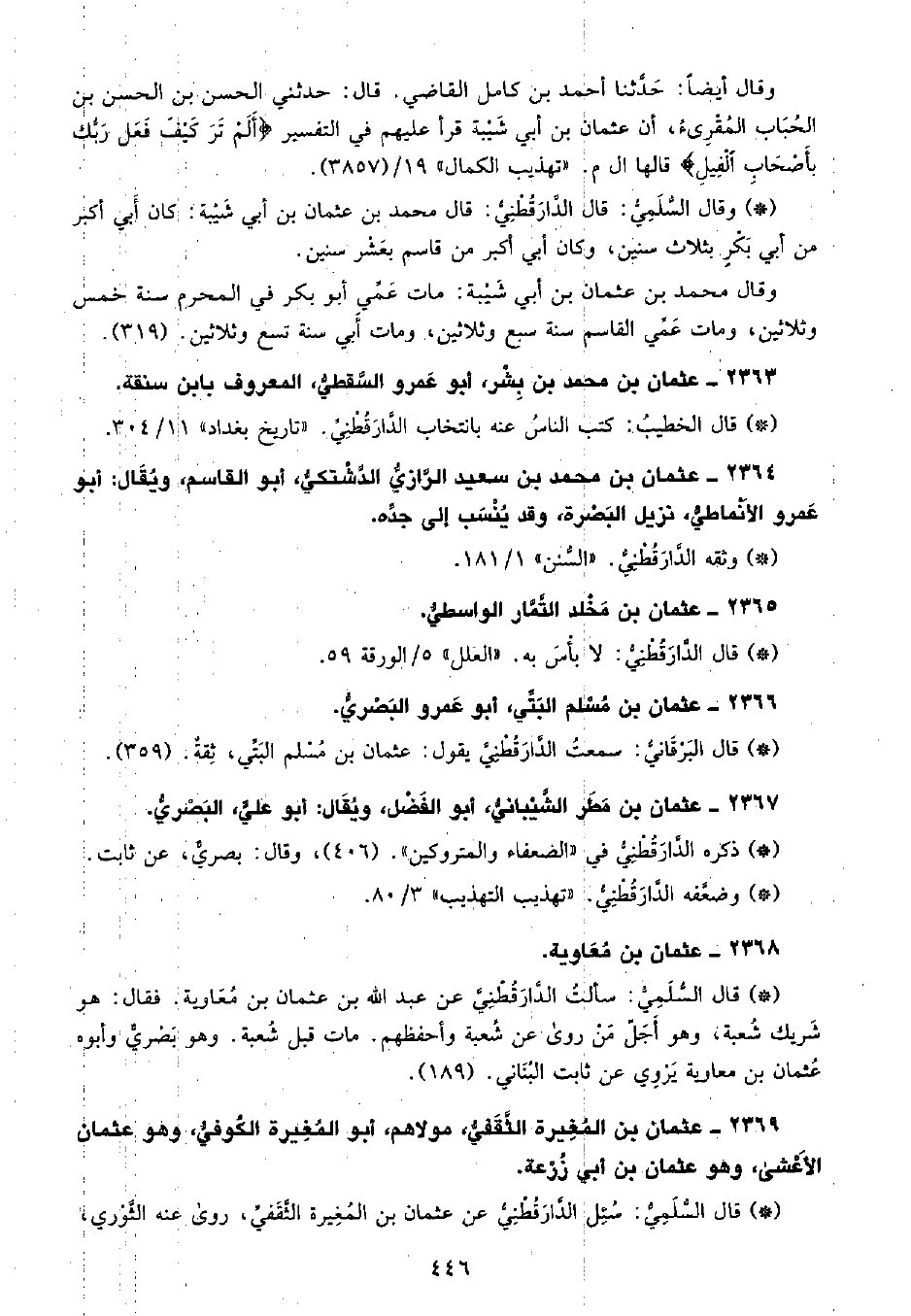 • قال البَرْقانِيّ: سَمِعْتُ الدَّارَقُطْنِيّ يقول عثمان بن مسلم البتي، ثقة. (359) .