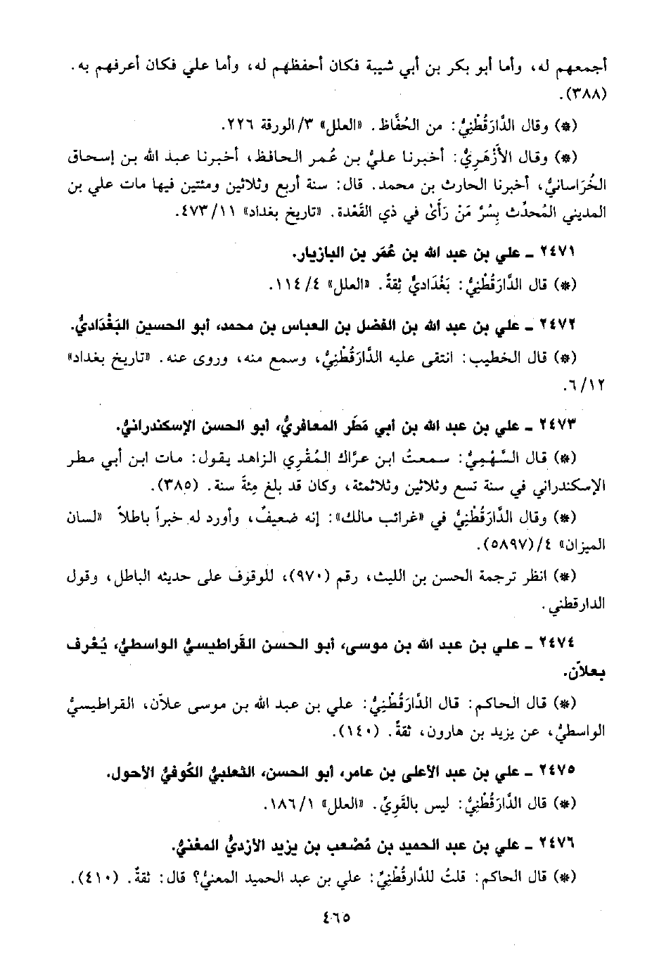 • قال الحاكم: قال الدَّارَقُطْنِيّ: علي بن عبد الله بن موسى علان، القراطيسي الواسطي، عن يزيد بن هارون، ثقة. (140) .