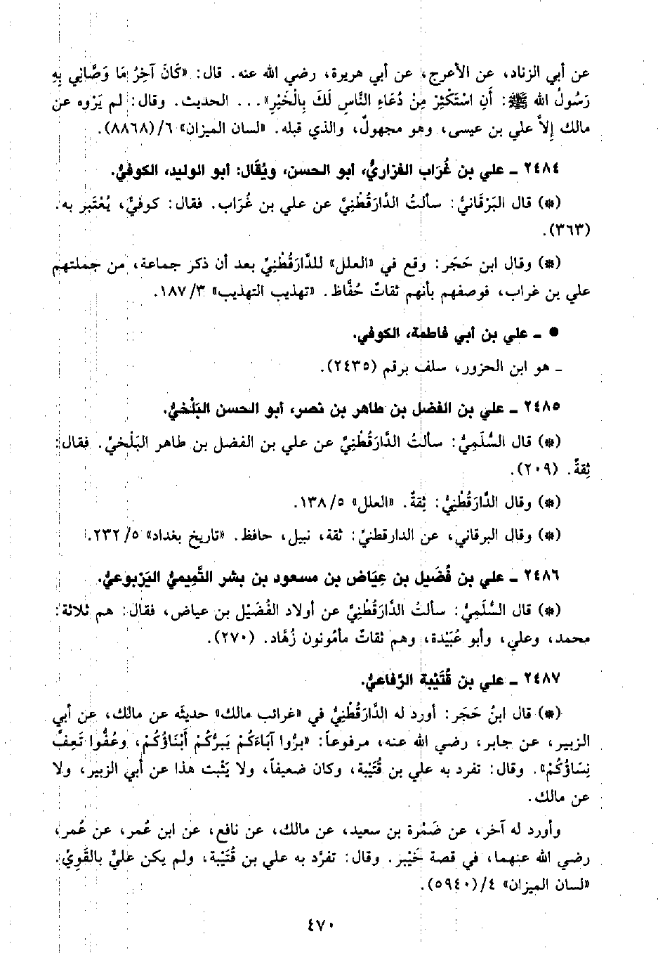 • قال السُّلَمِيُّ: سألت الدَّارَقُطْنِيّ عن علي بن الفضل بن طاهر البلخي، فقال: ثقة. (209) .