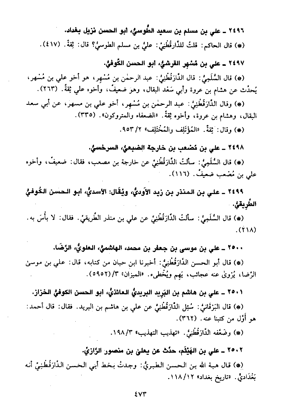 • قال الحاكم: قلتُ للدَّارَقُطْنِيِّ علي بن مسلم الطوسي؟ قال ثقة. (417) .