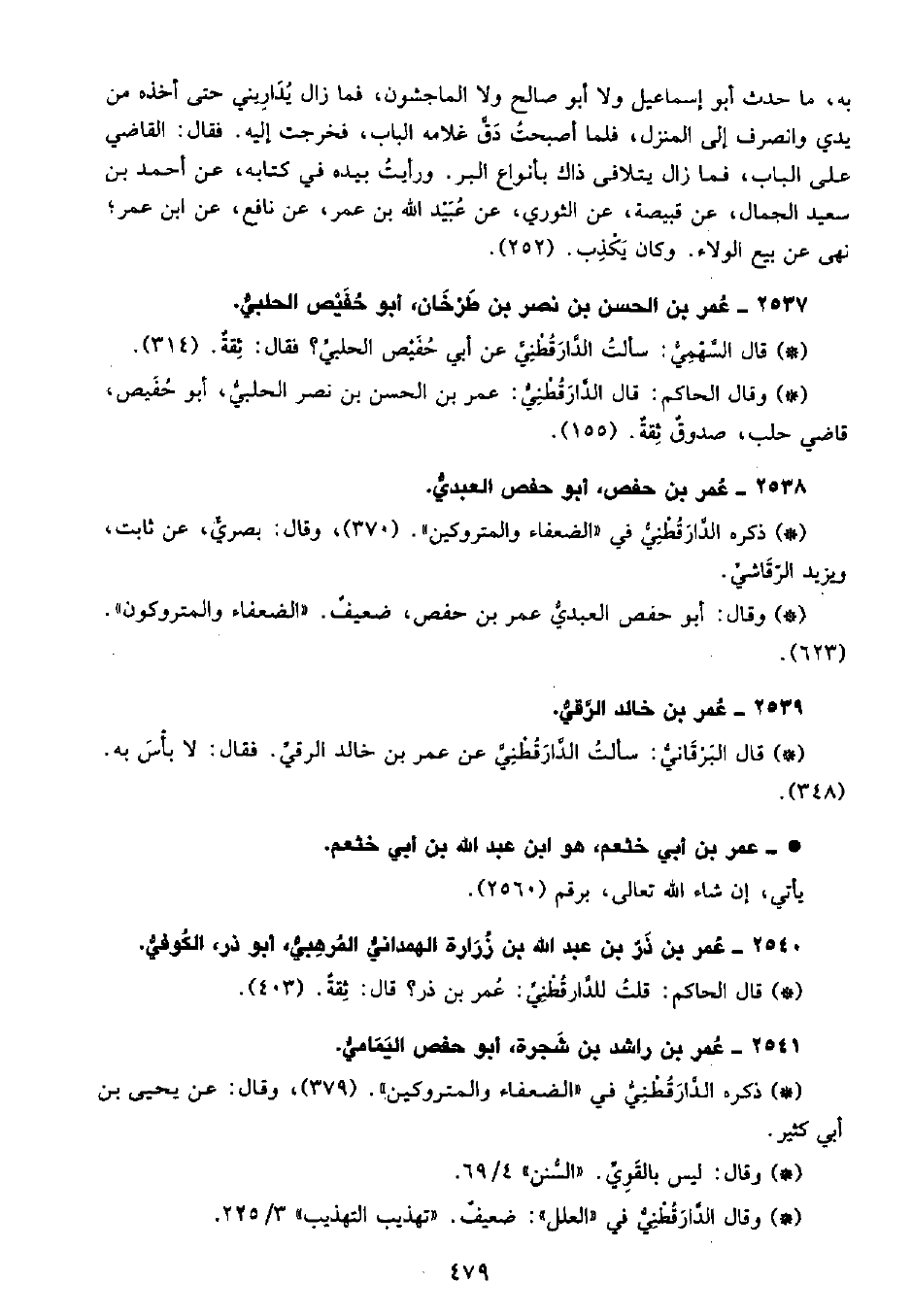 • قال الحاكم: قلتُ للدَّارَقُطْنِيِّ عمر بن ذر؟ قال ثقة. (403) .