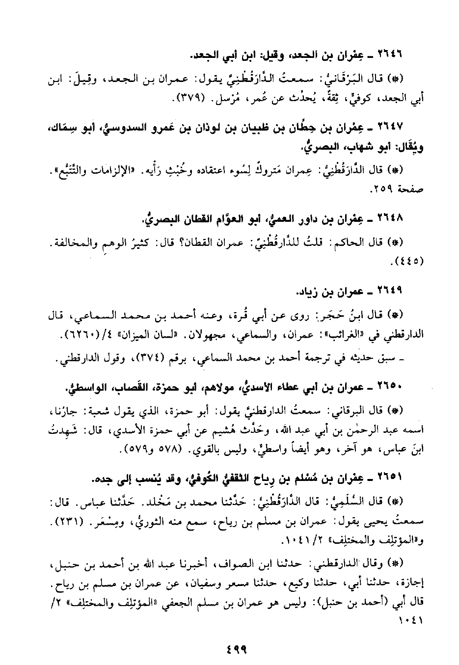 • قال الحاكم: قلتُ للدَّارَقُطْنِيِّ عمران القطان؟ قال كثير الوهم والمخالفة. (445) .