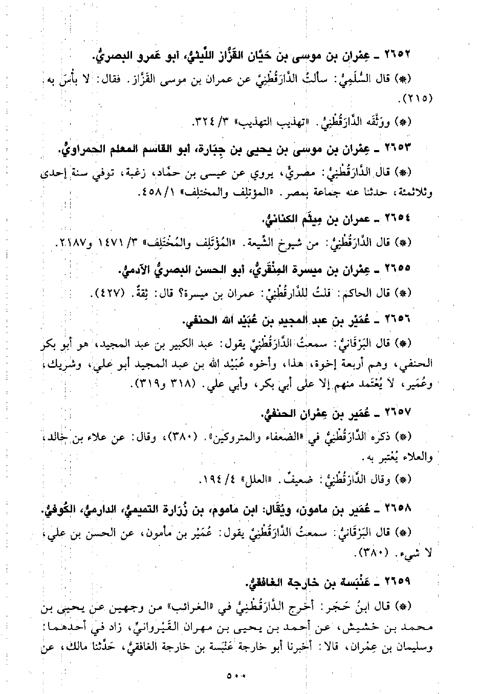 • قال السُّلَمِيُّ: سألت الدَّارَقُطْنِيّ عن عمران بن موسى القزاز، فقال: لا بأس به. (215) .