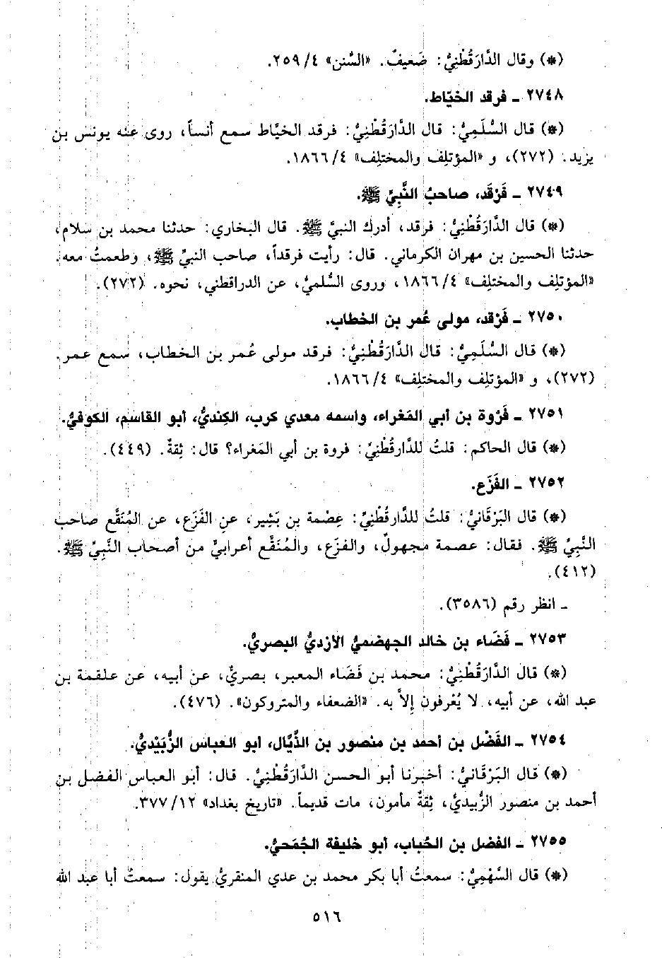• قال السُّلَمِيُّ: قال الدَّارَقُطْنِيّ: فرقد مولى عمر بن الخطاب، سمع عمر. (272) و «المؤتلف والمختلف» 4 1866.