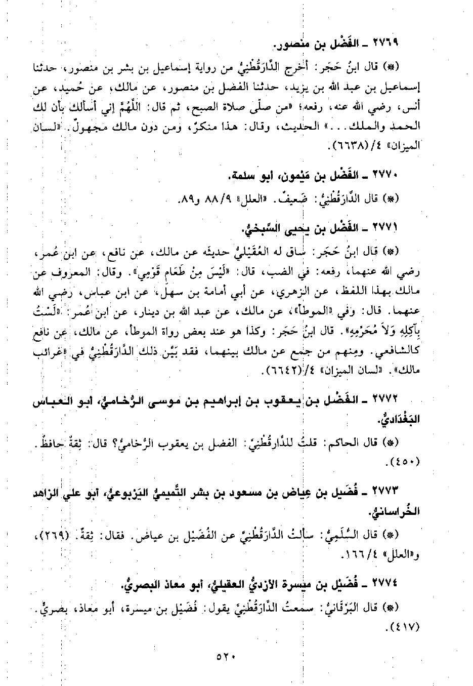 • قال السُّلَمِيُّ: سألت الدَّارَقُطْنِيّ عن الفضيل بن عياض، فقال: ثقة. (269) ، و «العلل» 4 166.
