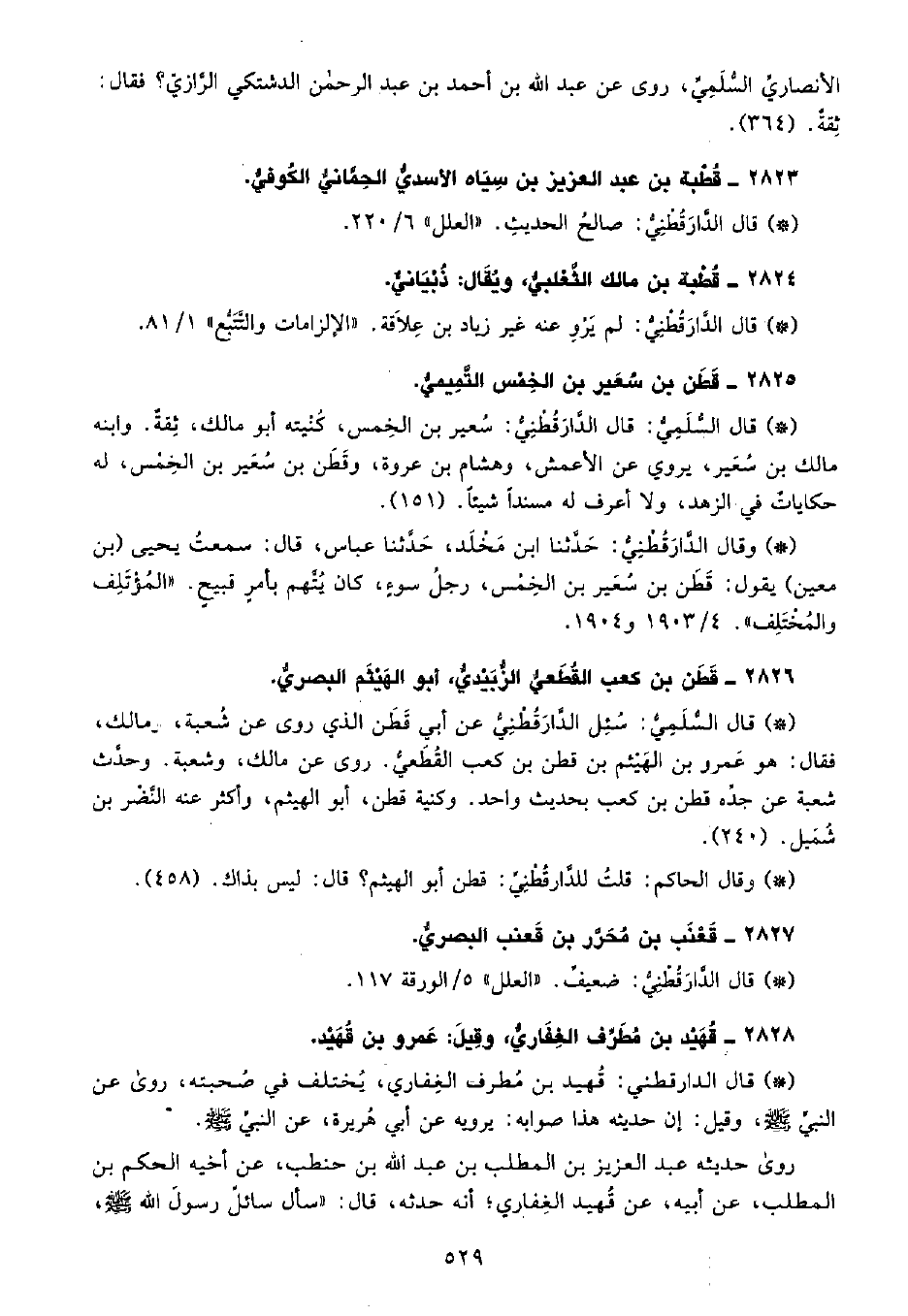 • وقال الحاكم: قلتُ للدَّارَقُطْنِيِّ قطن أبو الهيثم؟ قال ليس بذاك. (458) .