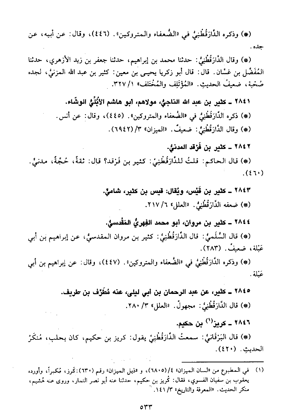 • قال البَرْقانِيّ: سَمِعْتُ الدَّارَقُطْنِيّ يقول كريز بن حكيم، كان بحلب، منكر الحديث. (420) .
